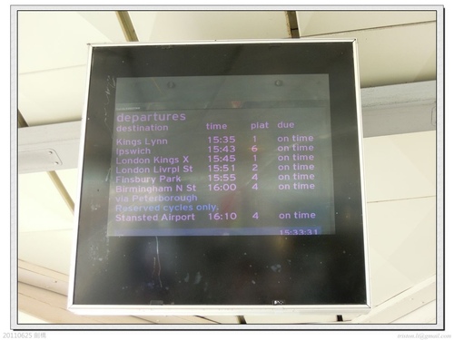 利物浦街車站的英國國鐵火車站..往cambridge的火車一直沒有show出上車月台來,先去拍拍照吧!