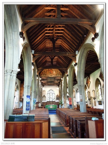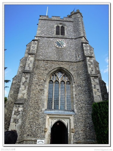 大學同學是馬來西亞僑生,研究所回新加坡唸書,後來又到台灣上了五年班,最後就決定和妻小定居在倫敦郊外的小鎮,Broxbourne雖然不大,不過景色宜人,鎮內有一間五百年的教會,同學帶我們進去參觀,教會的執事很認真的介紹它的歷史,可惜我不是很了解他的英文,不過看他很以自己服務的教堂及它的歷史為榮,那種神情真的很令人感動!