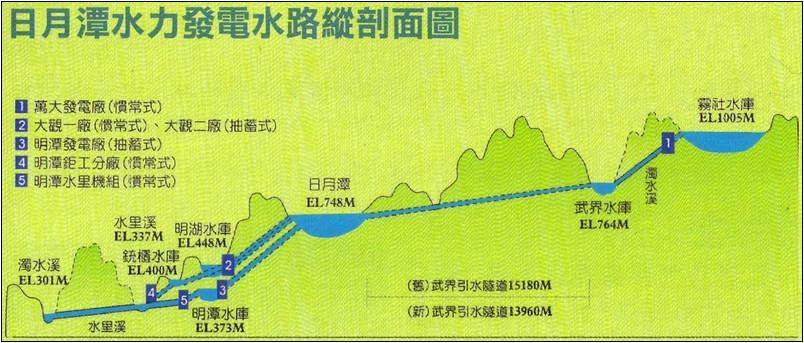 由於日月潭屬於離槽水庫,1934年便興建武界壩與武界引水隧道,以武界引水隧道將濁水溪上游的溪水引入日月潭,1934年間施工期間,大批技師、技手、及工人們在叢山峻嶺內工作,尤其是在暗無天日的隧道中進行施工,具有極高的危險性,因此不少人殉難於此!1999年動工的新武界隧道及栗栖溪引水工程則採用「全斷面隧道鑽掘機」(TBM)工法所挖鑿而成,成為台灣首次 TBM 隧道成功貫通實例,耗費經費達90億元,於2006年通水完工!