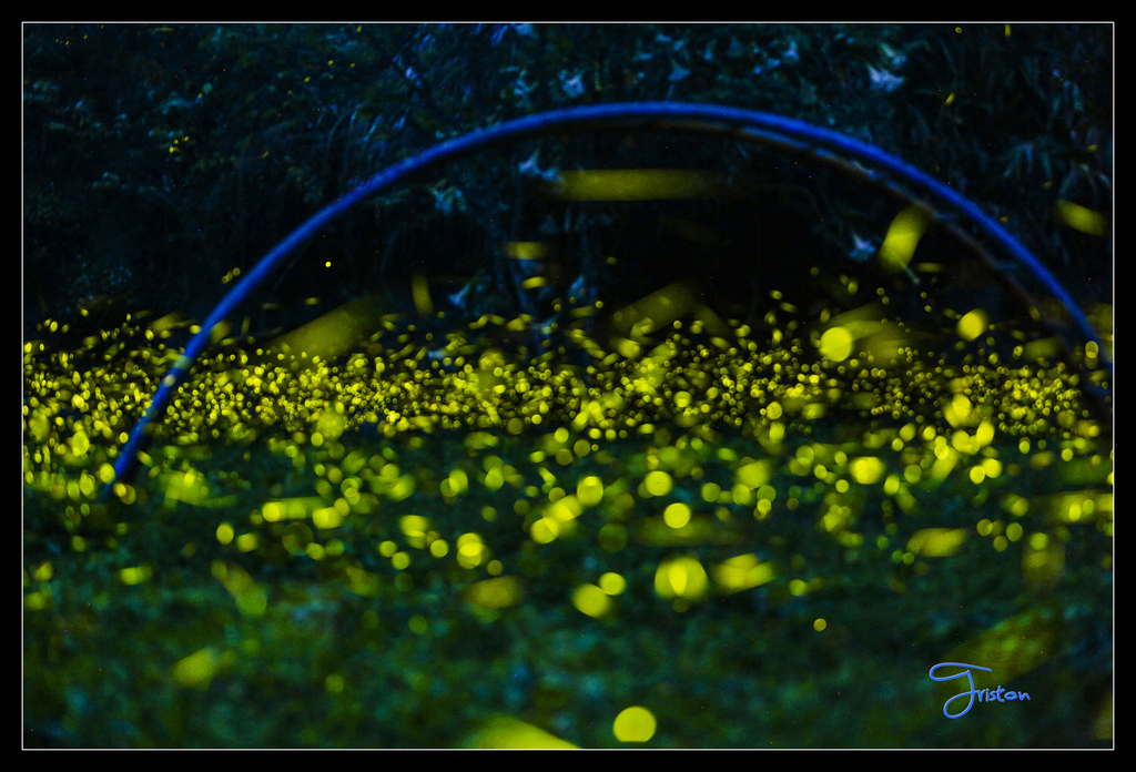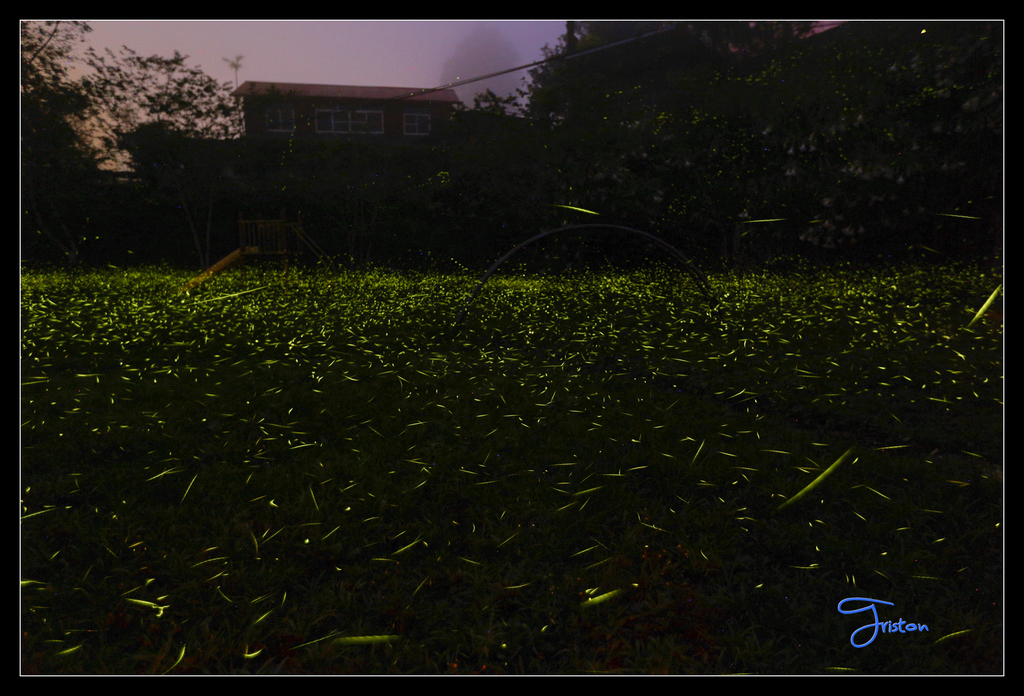 這一次為了創造螢火蟲滿天飛舞的效果,亂亂用了拍星軌的疊圖手法,連拍了3~5張,回來再用Startrail疊圖,果然滿地螢蟲如織....