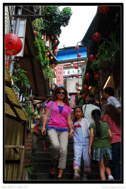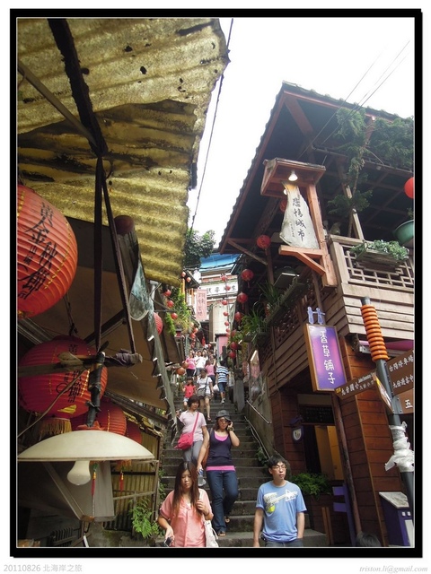 其實九份的景緻,客觀來說還蠻不錯的,不過先前雖然路經一次,卻沒有下來走走,因為看到所謂老街的人潮就怕了,那叫"老街"嗎?簡直是花園夜市!或許也可以說文化創意的力量真大,一部"悲情城市"創造出來的產值,搞不好比什麼雙D產業還有價值呢?