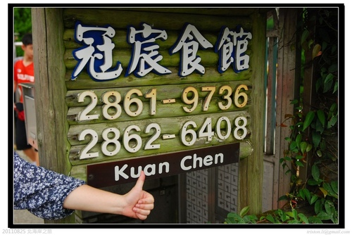 中餐安排的是冠辰食館,這裡竟然不接受電話預約,只好早一點把大隊人馬拉過來占位子,不過後來發現這果然是個明智的決定,才不一會兒,這裡就人滿為患,雖然是星期五平常日,等候的人也不少,這時我們坐在椅子上吃飯的心情當然就更好囉!