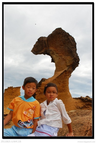 兒子說地上有一個問號咧..我看小孩子都比管理處會說故事,應該請野柳管理處辦個小朋友想像力大賽,幫"女王頭"找個繼承人,行銷不會說故事,只是一群蛋頭學者立個告示教學岩石種