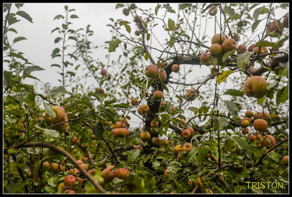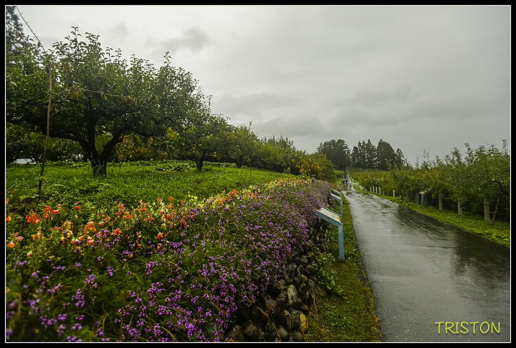 結實纍纍的蘋果樹,遠方導覽的告戒隨風傳來,這裡的蘋果比較貴,摘一顆罰三千元