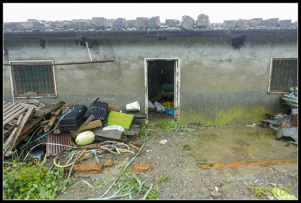附近有老舊屋舍,人去樓空,現在大多堆放農具