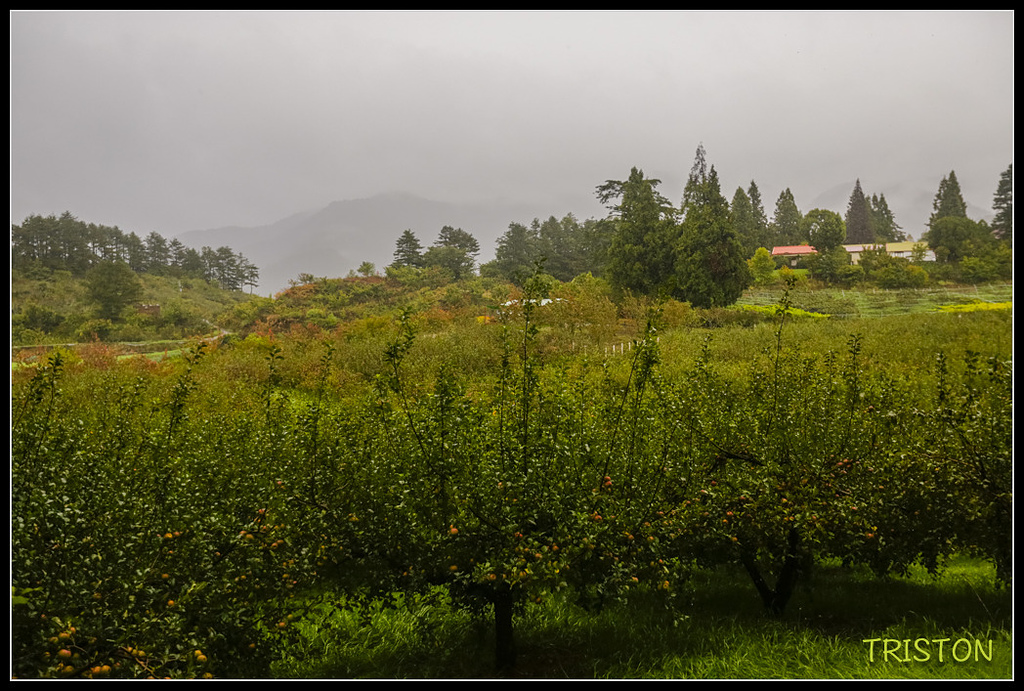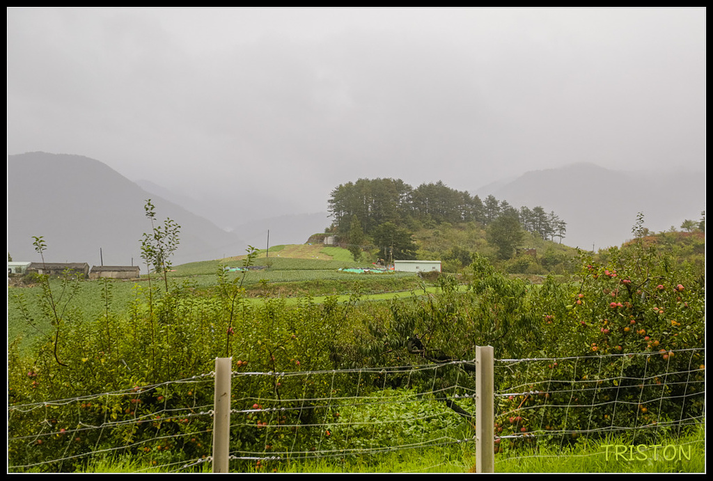 這次和同學到福壽山農場,一路風雨,南海的颱風低氣壓引進了東北方的氣流,結果颱風沒侵台,但雨下得可一點都不少!會合了同車朋友,由台南北上,進了國六,轉霧社,開始飄雨,進清境,過合歡山、大禹嶺、在梨山用中餐,往福壽山農場,在服務中心賺票入場後,前往華崗合歡溪步道。
