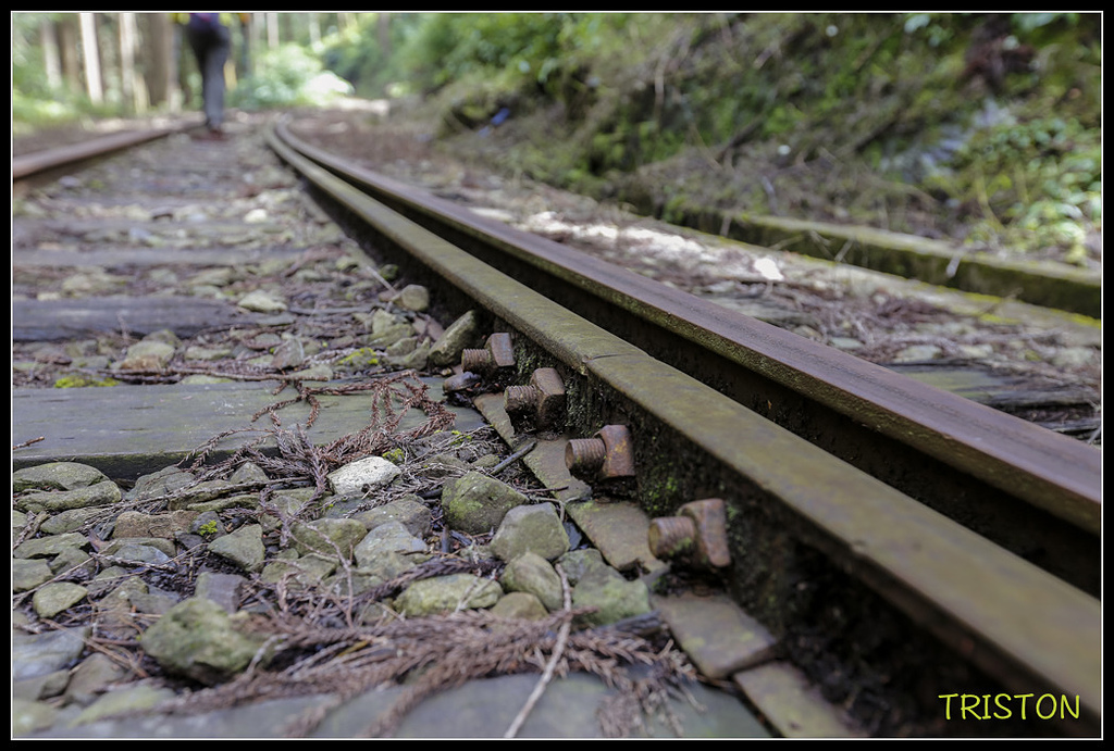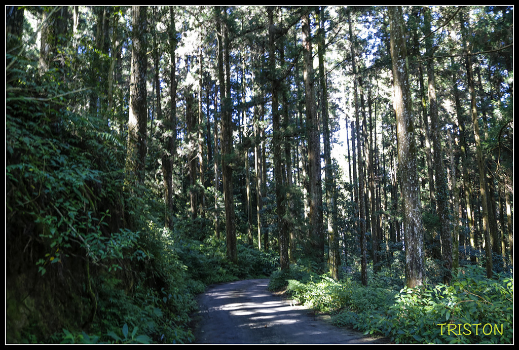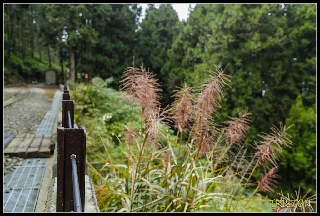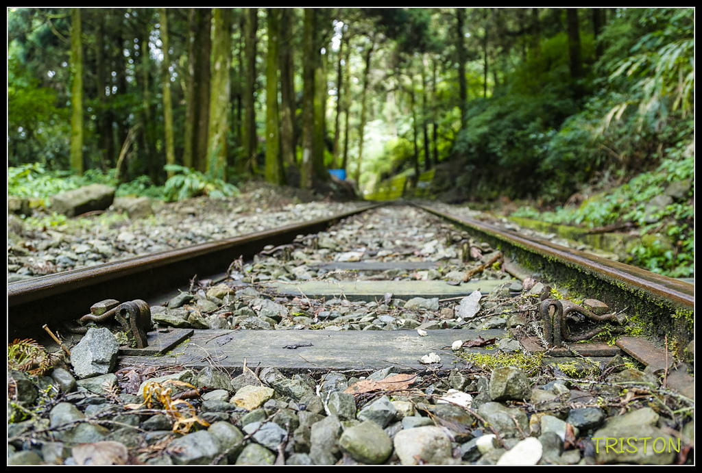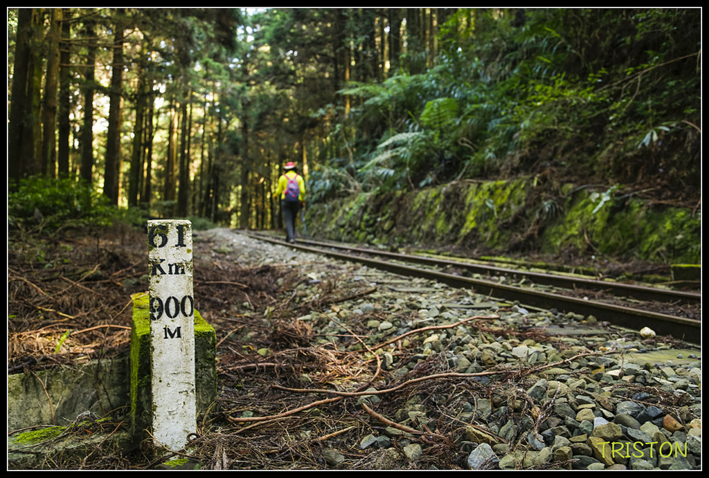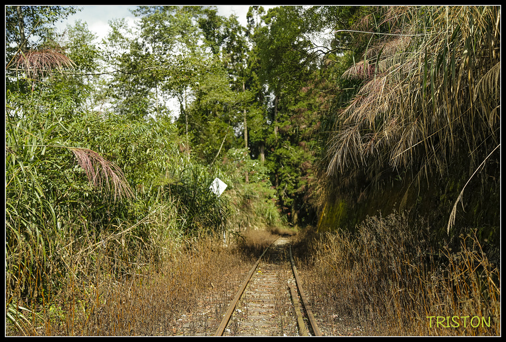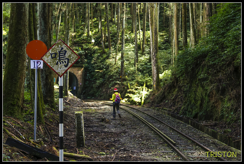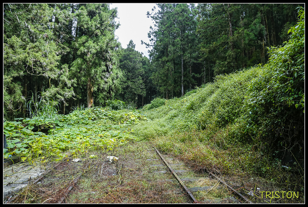 鐵道沿線柳杉林茂密,陽光灑落林間,此時一片靜謐,只聞蟲聲、風聲,和樹葉的沙沙作響!
