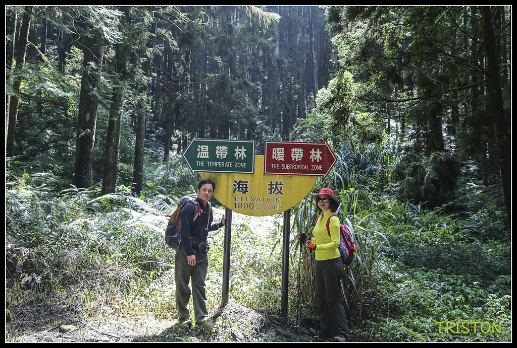續行,途中可遇到海拔高度1800m、溫帶林與暖帶林的交界牌,費了好大工夫,終於架好相機自拍了一張合照