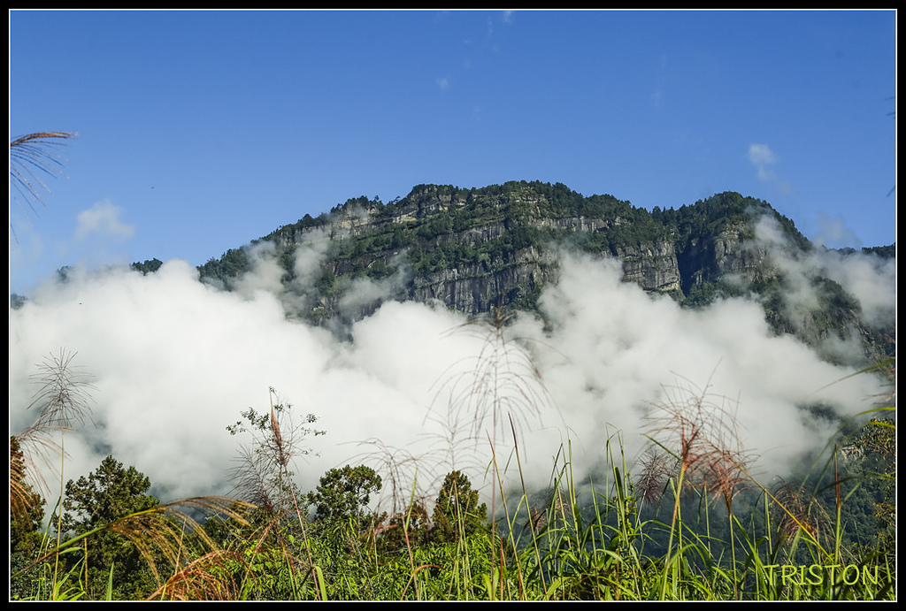 沿途透過芒草林間,可以見到塔山山壁峭立,突出於雲海之上,塔山海拔2,663M,是阿里山群峰中的最高峰,塔山山系是台灣原住民鄒族人心目中的聖山,是鄒族人祖先靈魂安息之處