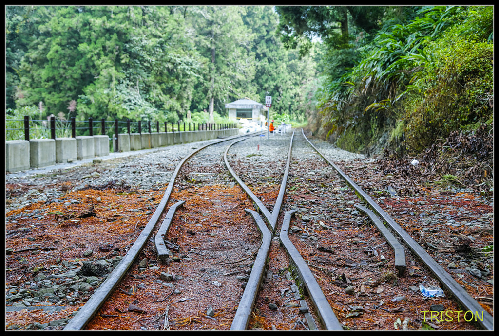 終於抵達阿里山森鐵之字型登山線折返點的「第一分道」,鐵道一上一下的高低落差明顯可見