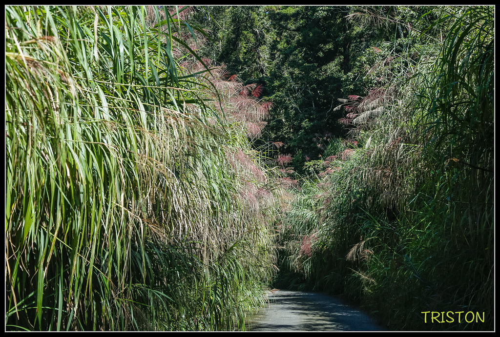水泥護欄旁,五節芒生