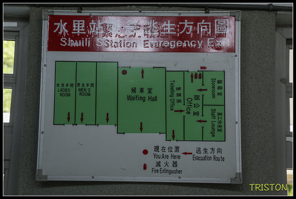 火車站裡原來都會有的緊急逃生方向圖,雖然我很懷疑誰會去看圖逃生,不是應該看綠色的逃生指示燈嗎?