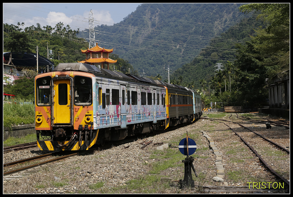 列車來了,等好久,DR1000型前進時還有點聲音,不致於無聲無息的出現