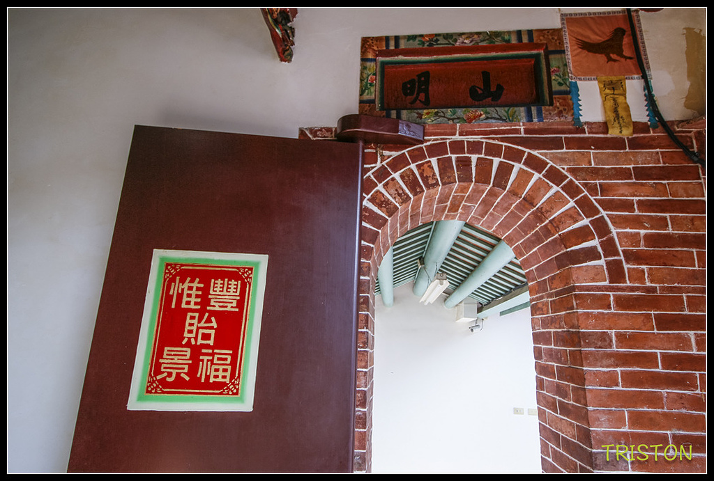 主殿左側門題有山明字樣,右側門則題有水秀字樣,門上對聯寫著"惟豐貽景福、以德裕民財",這通常是道教財神廟的通用對聯,沒想到也會出現在這裡