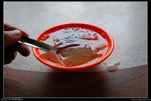 愛玉塊裡面有一些成形時的細小泡泡,愛玉本身含水量較低,所以吃起來會覺得較Q有咬勁!!加了山粉圓和檸檬汁,一碗30!