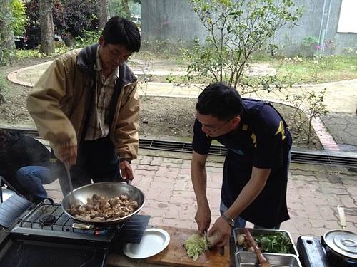露營嘛!不外就是吃喝玩樂,今天的晚餐擔當是剛晉陞的阿德師,原本是"阿德",後來掛階"阿德老闆",今天正式晉陞為"阿德師"。