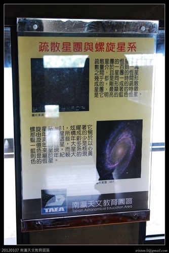 我到的時候是週六,展示館沒開放,不過我先前進去過一次,內容蠻豐富,一樓介紹我們住的地球,二樓是我們所處的太陽系,三樓就是宇宙和天文的部份,介紹的內容深淺都有,蠻適合全家共遊。