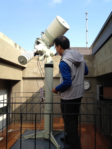 平頂觀測室有二架望遠鏡,白天主要是進行太陽黑子及日珥的觀測與解說;夜間則是透過實際的觀測,觀賞美麗的星雲、星團與行星。
