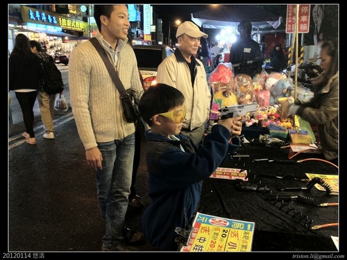 墾丁大街應該是到墾丁必去的景點之一,早上雖然天氣不錯,但是下午下了點雨,所以街上的人潮不多,大概都在看開票的結果吧!我們也不太買東西了,倒是兒子女兒對夜市的遊戲很感興趣,和二哥玩了空氣槍和彈珠才罷休。