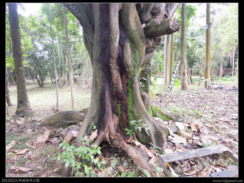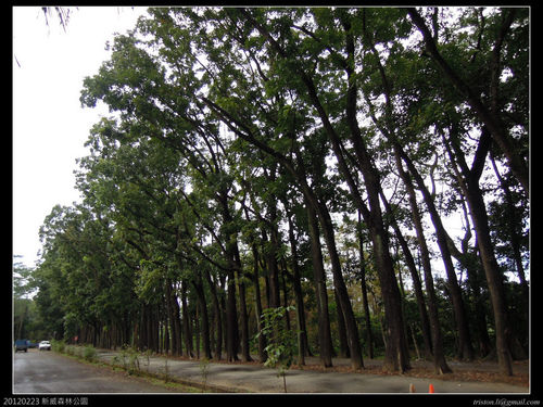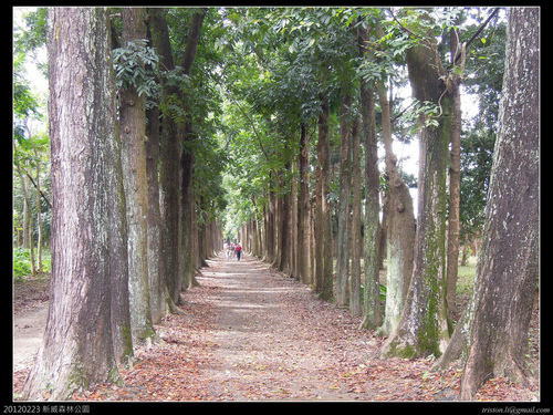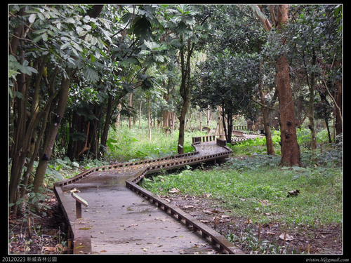 新威森林公園的兩側修建了木造步道,全長大約有1.5公里,這裡林木蔥籠,蠻適合來散步走走
