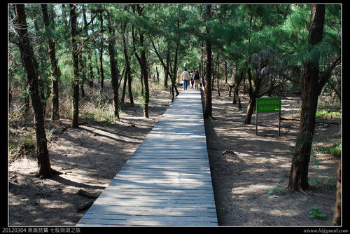 走在木麻黃的防風林步道中,涼風吹蠻舒服,直向前走,不用走一百公尺,就會到達台灣的極西點