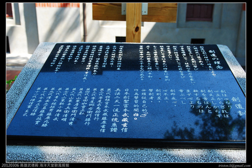 武德殿石碑後有宮本武藏的兵法極意二句:寒流帶月澄如鏡,實相圓滿之兵法。寒流帶月澄如鏡是白居易的詩句,意境就依人體會了。
