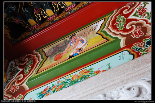 彩繪以南鯤鯓周邊鄉土生活動態意境,南鯤鯓代天府慶典、廟會、出巡等作為大綱題材,凌霄寶殿的彩繪是由台南有名的畫師家族潘麗水之子潘岳雄主持,潘麗水的父親潘春源也是有名的畫師,在善化慶安宮主殿左右壁堵有精采的作品-文王訪賢和三顧茅廬。