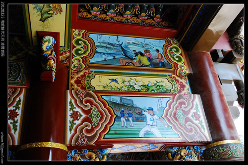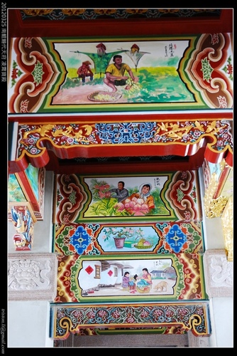 廟頂為交趾陶裝飾、花、鳥、人物、蟲、獸、鄉村生活情境等的構造配置