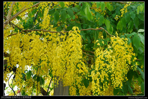 阿勃勒,稱雨蘭松,又稱倒吊蓮,即使是二百多年的老樹,生命力依舊旺盛,二三百年來,每到農曆五六月,一大片的金黃色燦爛花朵便恣意綻放。