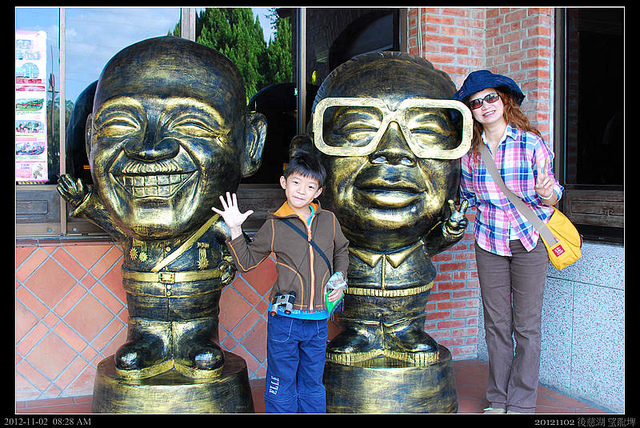 時間還早,慈湖外頭的停車場外還空空蕩蕩,慈湖現闢為兩蔣文化園區,服務中心門口立了兩尊蔣氏二代Q版大頭公仔,想不到兩位蔣總統,風雲一世,到頭來還得分身在這裡罰站裝可愛吧!我看這裡是很多大陸遊客來台灣旅遊的前幾天景點,應該會很Shock吧!老蔣還可以裝可愛,不知道他們的毛主席還得裝腔作勢多久??"