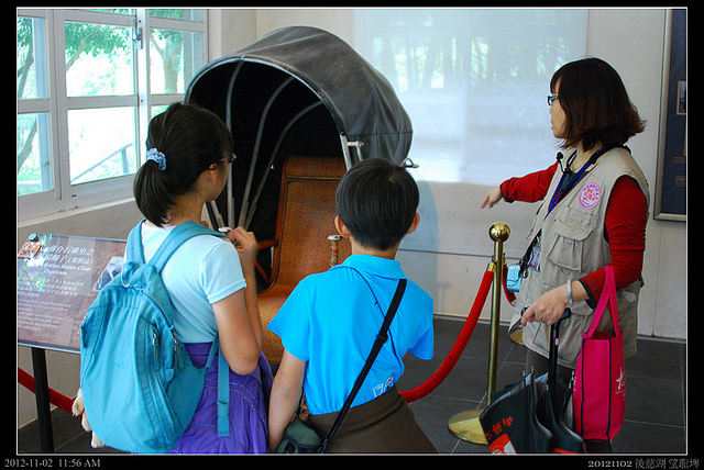 老蔣到台灣後,幾乎在歷史上退場了,公開活動也不多,或許當時美國政治勢力並不喜歡他的老派中國軍閥作風,有意地培養小蔣開明勢力,老蔣待在山林裡的時間可能比較多一點,這一部是他年紀大了後,上山所用的轎子複製品。
