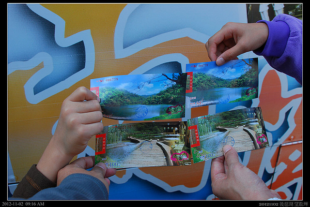 時間差不多了,準備買票入場整隊進入後慈湖,票價好像成人是一百,還含接駁車和解說哦!後慈湖的行程其實是從百吉隧道附進走到南管制口,確認持票後,再沿路走到後慈湖,逛湖邊後再經五間戰備辦公室後就直接由一般謁靈的前慈湖出來,所以不坐接駁車也很麻煩!