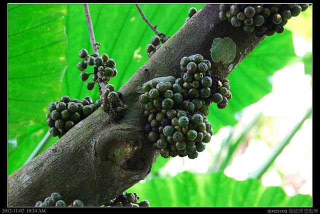 葉子很像稜果榕的水同木,水同木的果實長在樹幹上,聽說這幹生果也是可以食用,像無花果一樣,不過同行的遊客倒沒人試用,水同木也叫豬母乳,可是這種豬母乳和我們知道的野菜-馬齒莧(也叫豬母乳),不一樣.....