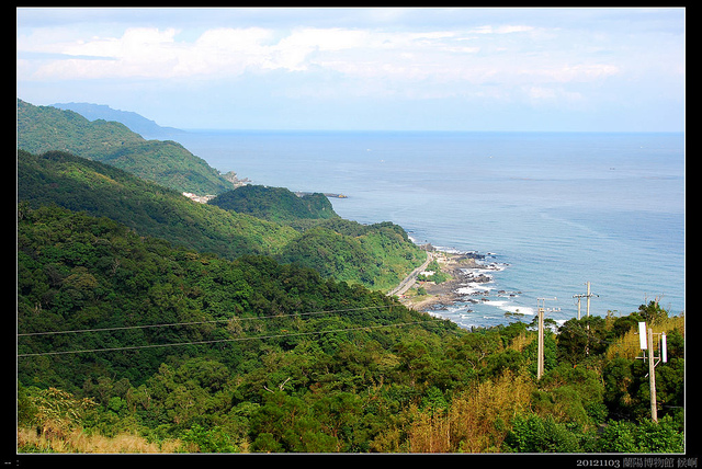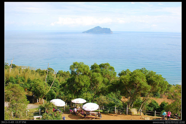 城堡咖啡廳實在太熱門,己經超越我對"咖啡廳"那種恬靜氣氛的想像,只得速速離開。山下有一個點,是通往飛行傘基地的入口,從這裡也可以清楚拍到龜山島,而來往城堡咖啡廳的人們多半驅車直上或速下山,倒沒有在這裡停留,所以輕易的立了腳架,拍了全家福照。
