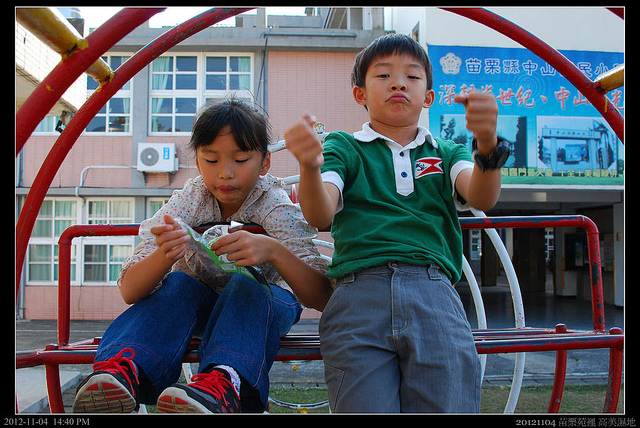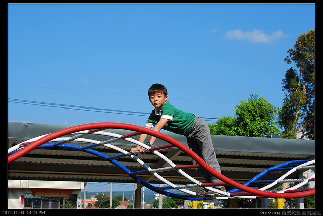 也沒太多樹,縣政府要好好反省啦!只會放煙火...苗栗的小學怎麼設施都很有"歷史感",小朋友倒是玩的很開心,爬上爬下,
