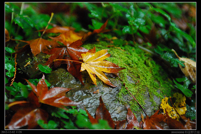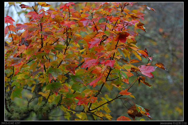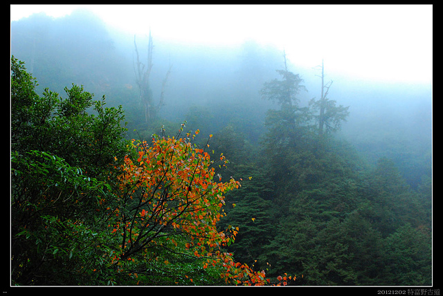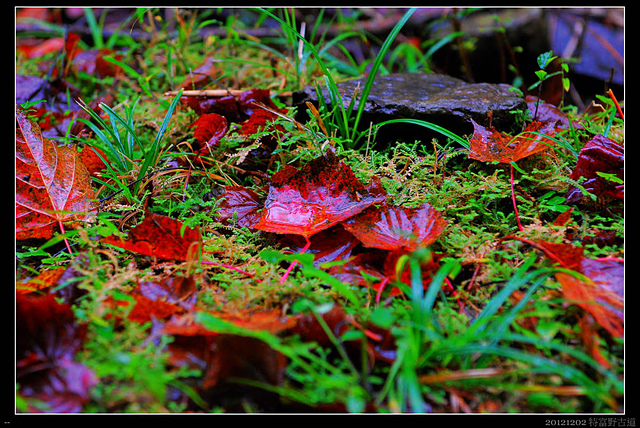 微微的霧雨,把地上的落葉洗濯出原本的鮮紅,也清鮮了山林的空氣。