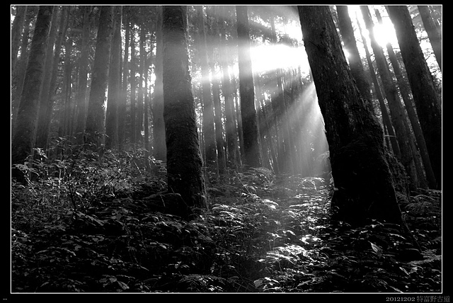 年前拍過的景,看到樹林間落下的陽光舖織成一片翠綠,還是忍不住拿起了相機