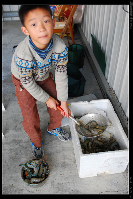 今天大概準備廿幾斤泰國蝦吧,平均一個人分個一二斤應該沒問題!今年泰國蝦價格大好,團不計成本的招待實在太令人感心囉!小帥弟應著烤蝦速度的加快,不停著由保冰盒裡剷出一盆盆的鮮蝦!