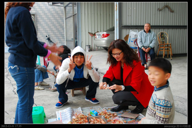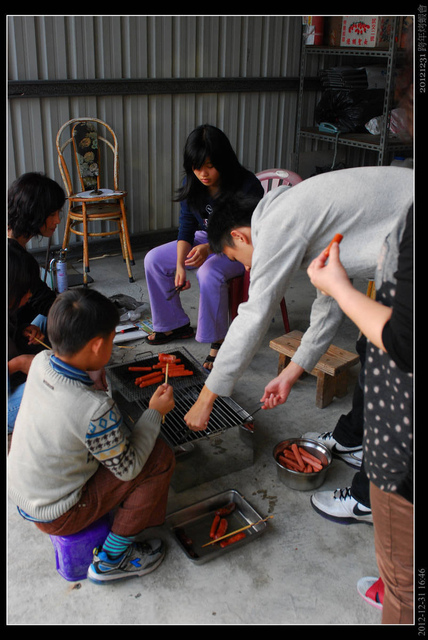 天色漸漸變暗,炭火也變得炙亮,今晚,我們要從2012年烤到2013年,把2012年不順利的,不愉快的通通化為熱氣蒸散,過了今晚,是新的幸福的2013年!