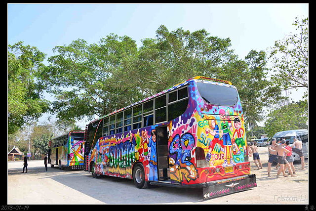 這裡可能也是學生的戶外教學地點,畫得和曼谷捷運車廂一樣五彩繽紛的遊覽車。