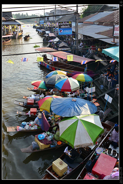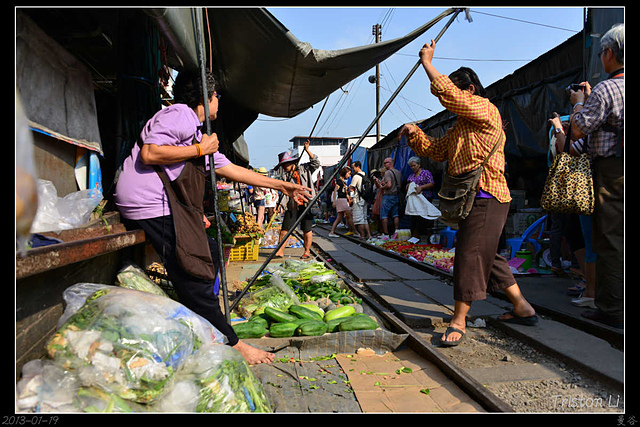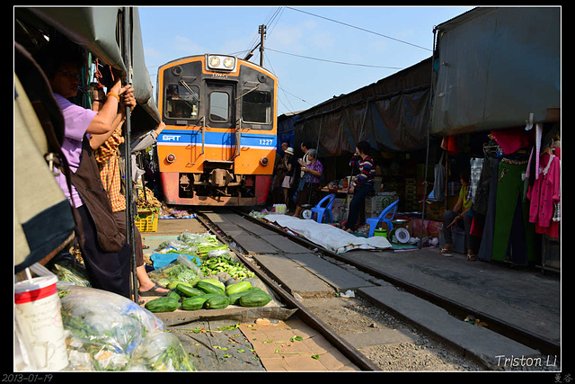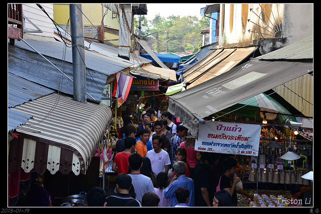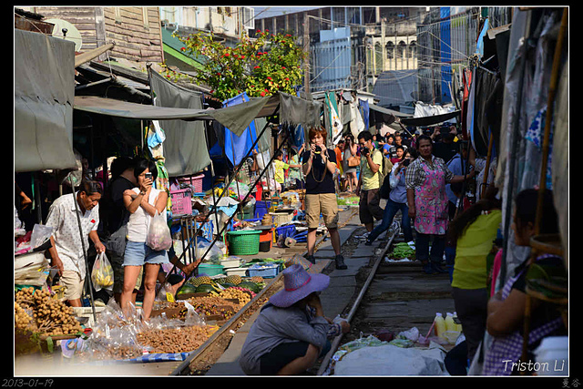 這個小地方的攤販早就對來自世界各國的遊客習以為常,或許因為觀光客的到來,反而促進了點經濟繁榮。幸好泰國的政客不像台灣的政客這麼有為,沒有豬頭到要把這個具有特色的地方作個改造。