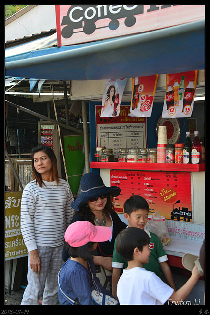 鐵道市場入口有攤奶茶舖,幾乎所有的導遊有推薦她的奶茶,所以生意挺火紅。我們原本要等的火車是14:30到站,不過後來傳來消息,要延誤一個小時,所以原本擠在好位置要拍照的人都散了。