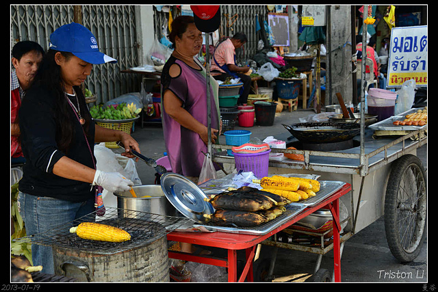 鐵道市場旁邊本來就是個市集,不遠處有攤烤玉米,特別香,特別好吃,玉米和雞蛋都是神奇的東西,隨便煮都很好吃。不過這家玉米攤離鐵道還有點距離,一般遊客似乎沒把目光聚到這裡來。