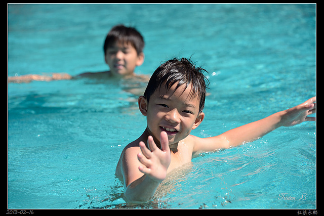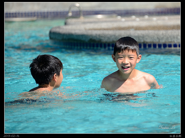 吃完早飯,又是玩水時間,紅柴水鄉最好的地方是一個大大的游泳池