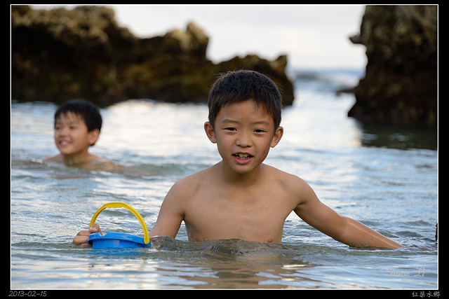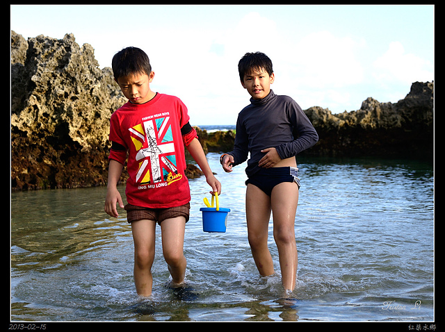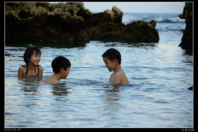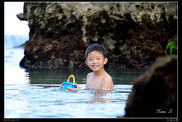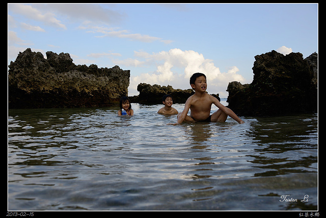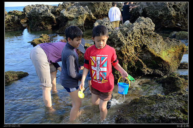 這一灘小海灣不大,淺淺的水,有很豐富的潮間帶生態,海參,海膽和海星,不時可見,小朋友最喜歡的,當然是捉寄居蟹,不過我們也只讓他們捉捉好玩,這裡的東西是絕對不能帶走的。帶走又有什麼用呢?不就是滿足一下貪心的感覺而已,那些生物一離開海水就活不了了。。