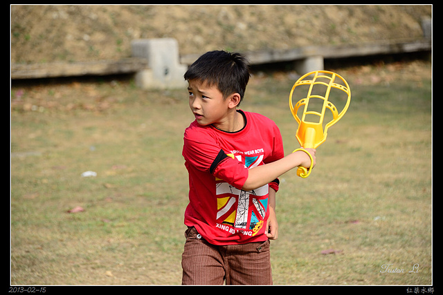 草皮上,剛好給兩個小男生玩魔天球,瞧那個認真模樣!