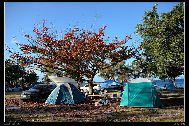 今天的營地是墾丁有名的紅柴水鄉,同學來了好多次,我們之前雖然常露營,但這裡倒是第一次來,不知是太久沒露營,還是我們都走簡單路線的,這裡的費用大人一個400,小孩一個200,比之前的經驗貴了些。不過它的環境還不錯,面海的大草坪,只是春節期間,露營的人多了,草皮上多了些不該出現的垃圾!