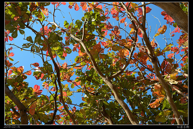 我們選定了草皮中的一棵欖仁樹下,紅色的欖仁葉落了一地,倒成了天然的舖墊,樹葉裡夾雜了一些前夜遊客留下的仙女棒,真是有點危險。小朋友今天都很用心哦!每個人都楝了一包垃圾和石頭。