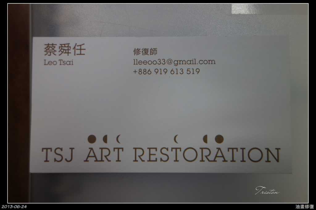 他算是公眾人物,拍他的名片應該不會被告吧!我的朋友中,如果家裡有油畫寶物要修復的好野人,可以找蔡老師哦!