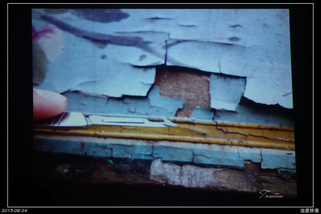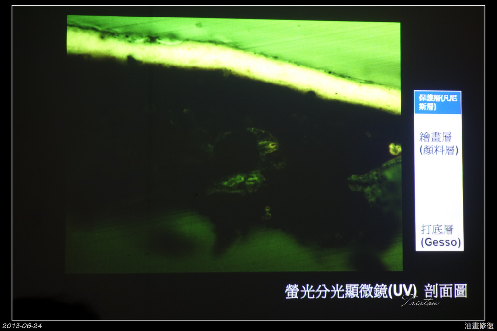甚至用螢光分光顯微鏡去分析它的構成。蔡老師說,大師作品為了讓顏料表現出光線的折反射,往往要重複上七八道油墨,所以在修復時也要了解作者的技法和工作